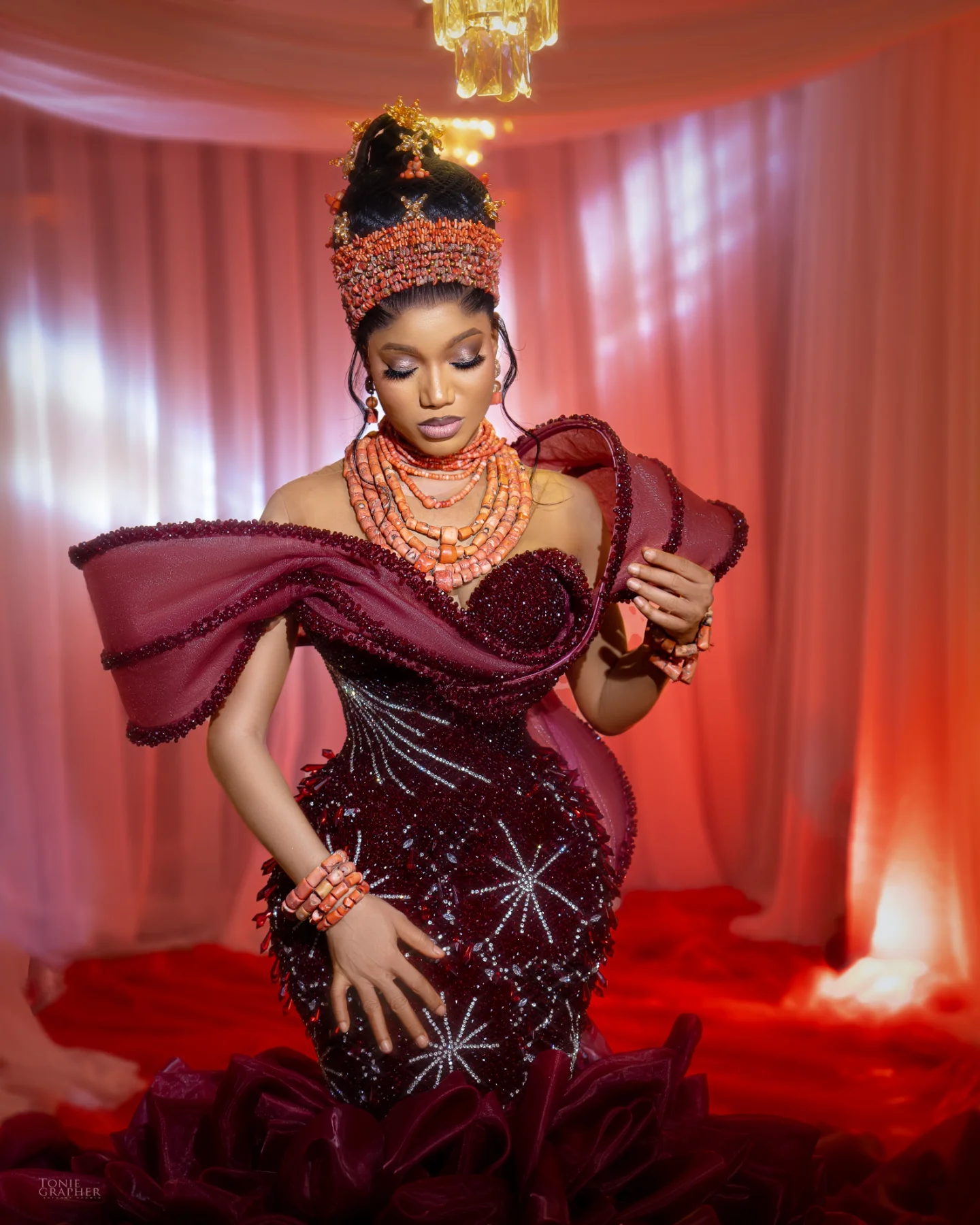 AGBONS-GL blends modern silhouettes with artisanal African detailing to create bridal and couture pieces that feel personal and timeless. Each creation is made to measure and finished by skilled artisans in Benin City.